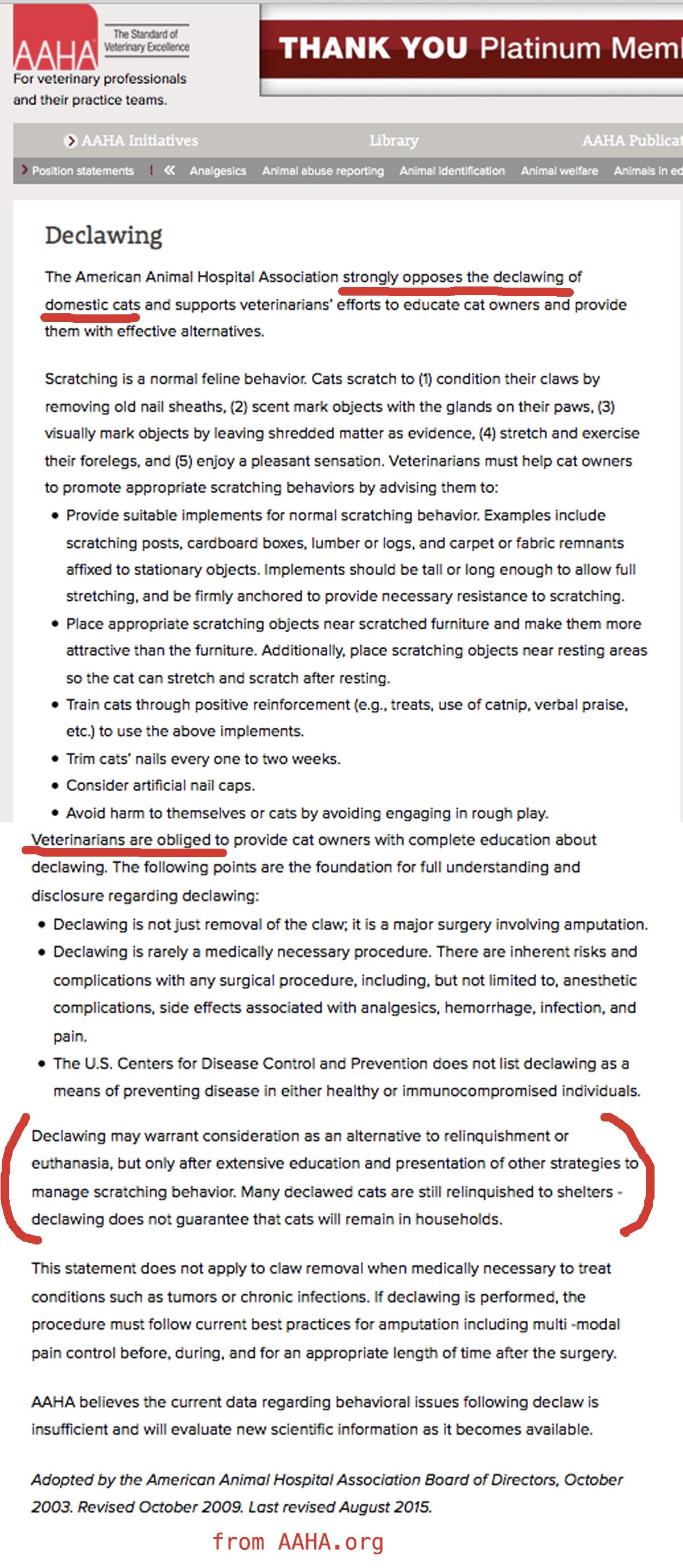 AAHA PositionDeclawing