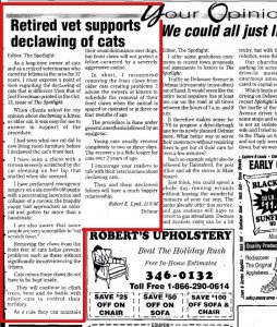 • A Letter to your Declawing Veterinarian
